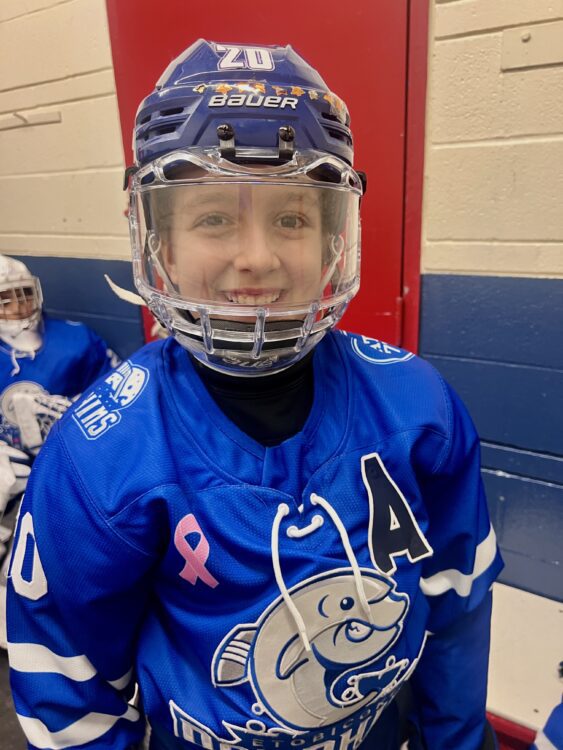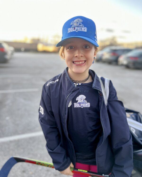 Hi! My name is Gia. I’m from Toronto and I play forward/left wing in hockey. A few years ago, my friend from baseball told me to try hockey so we could play together all year round. I loved it right away and have been playing ever since! Now, I play U11A for the Etobicoke Dolphins. It’s so much fun!