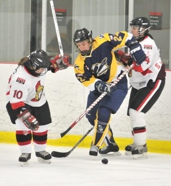 Before wearing the blue and white of the Furies franchise, Bowman spent the 2010-11 CWHL season in the black and red colours of the Brampton Thunder, one of the longest running women’s ice hockey organizations. Undoubtedly, adjustment represented a significant aspect of Bowman’s first season with the Thunder, one of Mississauga’s signature rivals, dating back to the original NWHL.