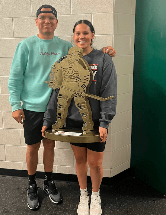 In the growing legend of the Chief Thunderstick tournament, the presence of Shaylyn Constant and her husband Brady Keeper created history. Both belonging to championship rosters in 2023, in what is believed to be the first husband and wife to achieve the feat, the essential theme was family. From Keeper skating alongside his brother on the Cross Lake Islanders, to Constant’s mother on-hand showing her support, their collaborative efforts found tremendous inspiration in the presence of their three sons.