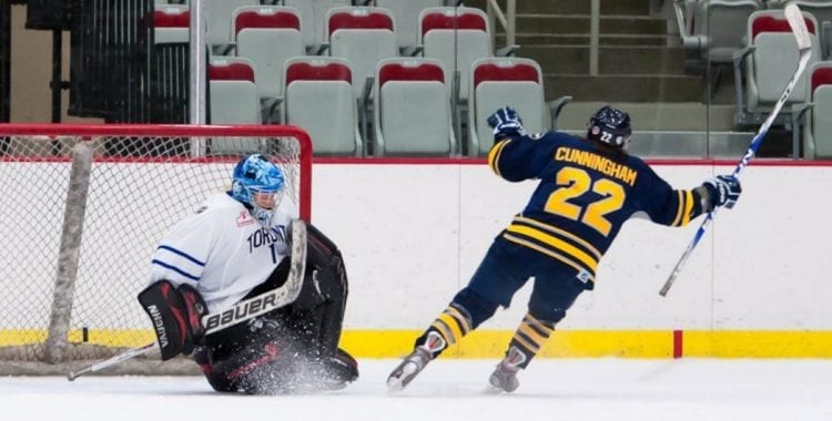 Cunningham’s hockey life would seemingly reach greater summits with each successive season. From a 2012-13 season filled with the opportunity to compete in a pair of hallowed NHL venues, including Toronto’s Air Canada Centre, plus the iconic Saddledome against the Boston Blades, the calendar year of 2014 would provide more treasured memories. With the Inferno qualifying for their postseason berth in 2014, gracing the ice against Montreal in the opening round of the Clarkson Cup playoffs, the momentum continued as the affable forward was part of a highly historic milestone in league history.