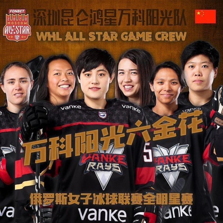 Rachel Llanes from @KRSVankeRays and captain @BYipper18 represent the Kunlun Red Star hockey club at the all-star. 🇨🇳 #GrowTheGame pic.twitter.com/WsnHTDHCz0