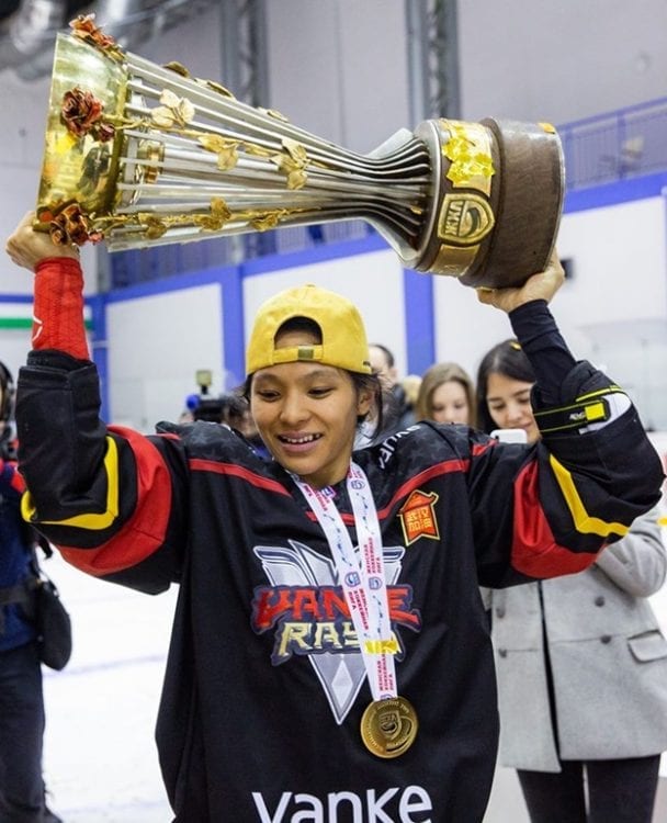 Before Llanes’ NWHL career would expire, she would hoist the Isobel Cup, placing her in the pantheon of celebrated skaters that have won both, the Clarkson and the Isobel Cups in a career. Although her hockey narrative involved a return to the CWHL, it was only part of a much grander narrative. With the league announcing in the summer of 2017 that a pair of expansion teams from China, the Kunlun Red Star and the Vanke Rays, would begin playing for the 2017-18 season, it propelled Llanes towards an exciting new chapter.