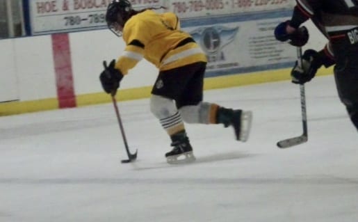 She practiced this way, teaching herself through trial and error, when her neighbour suggested that she play on a ladies recreational hockey team in Devon — a farming town situated 26 kms southwest of Edmonton with close to 7,000 people.